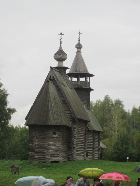 В эту субботу, посетив знаменитый Ипатьевский монастырь, что у славного города Костромы при слиянии речки Костромы и Волги, приобретши по случаю две льняных рубахи, одна другой прекрасней, я отправился в расположенный тут же, в Ипатьевской слободе, музей деревянного зодчества полюбоваться на собранные по всей Костромской земле крестьянские избы, церкви и часовни, овины, амбары, мельницы и бани на сваях. И еще на подходе осознал ужасное: сегодня же суббота. День свадеб. Вся улица перед музеем под открытым небом была запружена разукрашенными искусственными цветами машинами, девшками в синтетических платьях, юношами в неловко сидящих костюмах с блестками, фотографами, торопаящимися запечатлеть дорогие мгновения. Должно быть сегодня по музею побродить не получится - предположил я и мое предположение переросло в уверенность, когда ко мне подошел один из молодых гостей и попытался что-то спросить. Что - я понять не смог, поскольку он, как говорит присловье, не вязал лыка. Так оно и оказалось. Весь музей был заполнен свадебными компаниями (собрались в одной точке, как я прикинул, свадеб 10-12), которые расселись на всех скамейках, курили, выпивали, шумели, отпускали плоские шутки, отчаянно фотографировались и переходили из состояния подпития в состояние невязания. Прихожу я весь такой духовный, нарядный, в русской рубахе насладиться шедеврами русской традиционной культуры, а тут такая гопота тусит, которой до этой культуры дела нет. Вот они, случайно запечатлелись на фотографии на самом краешке внизу.